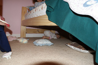 Got me. Sarah and Rachel both liked to sleep under beds, but usually they were half under the bed so you could immediately see them.